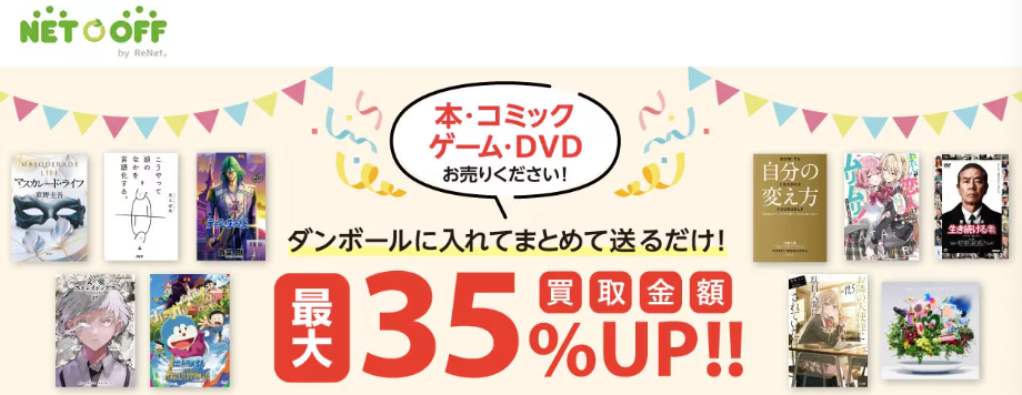 ネットオフは宅配専門の買取サービスで、本やゲーム、DVDなどを中心に取り扱っており、箱に詰めて送るだけの簡単買取のため、初めての方でも利用しやすいことが特徴です。